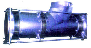 彎管壓力平衡型膨脹節 bend pressure balanced expansion joint 彎管壓力平衡型膨脹節由一個工作波紋管或中間管所連接的兩個工作波紋管和一個平衡波紋管及彎頭或三通、封頭、拉桿、端板和球面與錐面墊圈等結構件組成,主要用于吸收軸向與橫向組合位移并能平衡波紋管壓力推力的膨脹節。 |